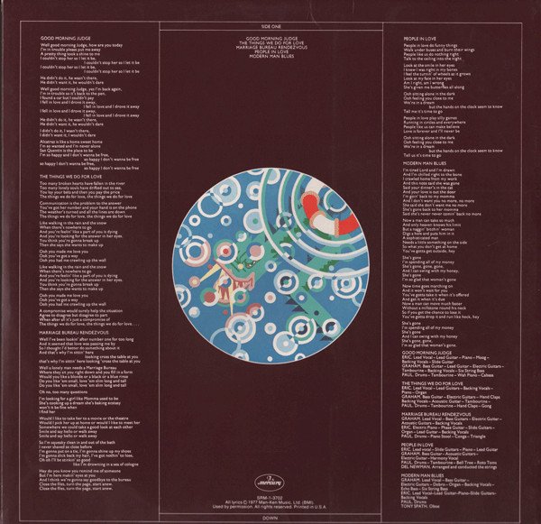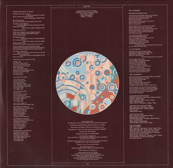 The track "Feel The Benefit" contains three individual parts, listed as 1, 2 and 3 on the cover, but named on the label. Part 3, 'Reminisce and Speculate', is mis-titled 'Reminisce and Speculation' on the label.