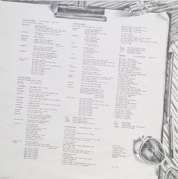 Issued in a poly-lined DRG inner sleeve housed in a gatefold jacket. Also includes a 12"x12" insert with lyrics and credits. Runouts are stamped, except MELY or MELYS, which is etched. Gatefold inside: Produced and recorded [...] at Strawberry Recording Studios (UK) Ltd. Stockport, Cheshire, England. Master cut: [...] I.B.C. Studios, London. Printed & made by Howards Printers (Slough) Ltd, England. Insert: Publishing: World Copyright. St. Anne's Music Ltd., Kennedy House, 2 Swinbourne Grove, Withington, Manchester M20 9PP, England. Inner sleeve: [DRG logo] British Patent No. 1072844 & 1125555 Made in England 4913000 15803 Labels: Made in England ℗ 1975 Phonogram Ltd.