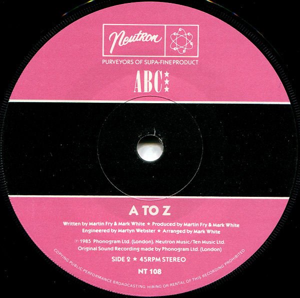 Sleeve Art: Keith Breeden at Design KB with ABC℗ 1985 Phonogram Ltd. (London) Neutron Music/Ten Music Ltd. Original sound recording made by Phonogram Ltd. (London)Durations do not appear on the release.