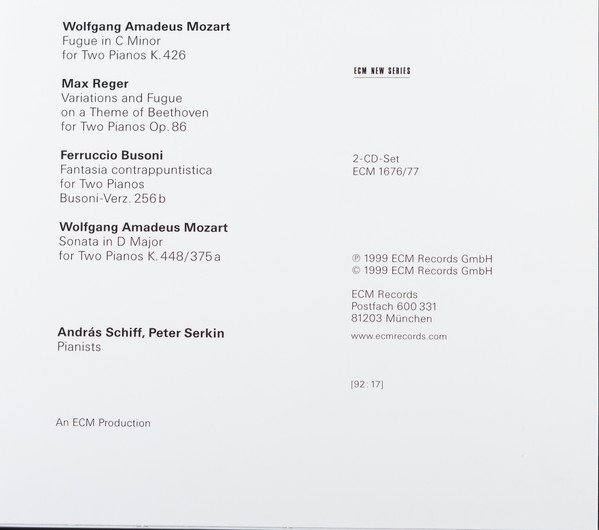 Recorded November 1997 at the American Academy of Arts and Letters, New York Released in a Fat jewel box with two booklets housed in card slipcase. An ECM Production ℗ 1999 ECM Records GmbH © 1999 ECM Records GmbH