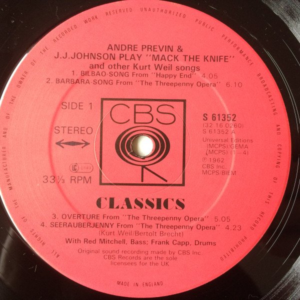 | B1 | Mack The Knife (Moritat) From "The Threepenny Opera" | 4:55 |