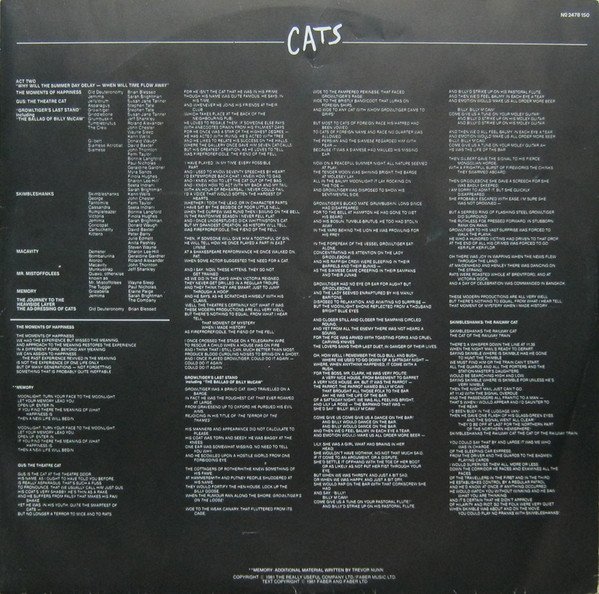 Music By Andrew Lloyd Webber Based On 'Old Possum's Book Of Practical Cats' By T. S. Eliot.