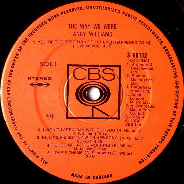 (C) 1974 CBS, Inc. / (P) 1974, CBS inc. 1st. cat. # on the labels, 2nd. on the sleeve.