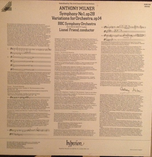 Anthony Milner (2) - Symphony No1 / Variations For Orchestra