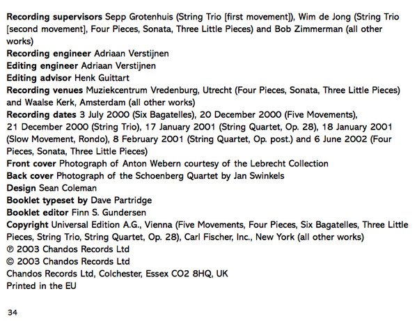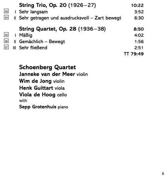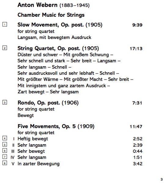 | Five Movements, Op. 5 (1909) for string quartet | 11:47 | |