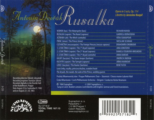 ℗ 1984 Supraphon © 2003 Supraphon a.s. Sung in Czech. Booklet contains Czech libretto with English, German and French translations. Recorded digitally at the Dvořák Hall of the House of Artists, Prague, from 25 August to 9 September, 1982 and from 23 to 24 August, 1983 CD1 Total time 55:19 CD2 Total time 45:53 CD3 Total time 56:03 Total time 167:15