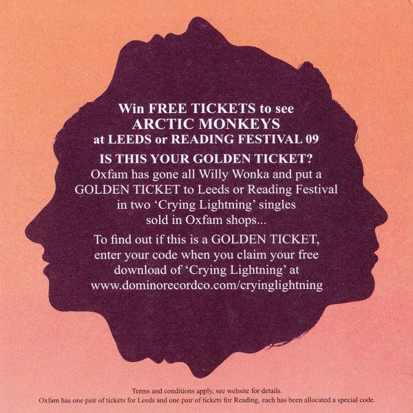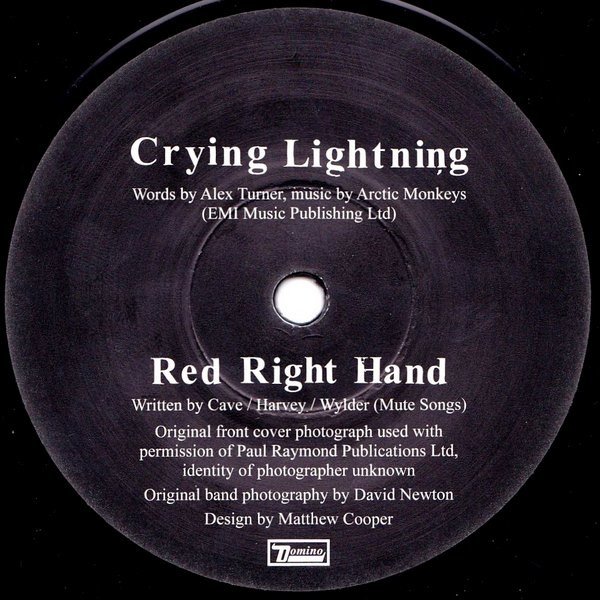 Initially, this record was exclusively available through [url=https://www.discogs.com/label/122615-Oxfam]Oxfam Charity[/url] shops. These copies include a large postcard code to redeem for a digital version ([r=15236592]) and to enter an online competition with the chance of seeing the band at Reading. Made available to purchase online at a later date through Arctic Monkeys / Domino's webstore. Copies bought online don't include download card/Oxfam sticker on sleeve. Track A Recorded at Pink Duck Studios and Rancho de la Luna. Track B Recorded at Mission Sound, Brooklyn. Track B Vocals Recorded at Electric Lady Studios, New York. Both tracks Mixed at Electric Lady Studios, New York. Original Front Cover Photograph used with permission of Paul Raymond Publications Ltd, identity of photographer unknown. A: EMI Music Publishing Ltd. B: Mute Songs Made in the EU. ℗&©2009 Domino Recording Co Ltd.