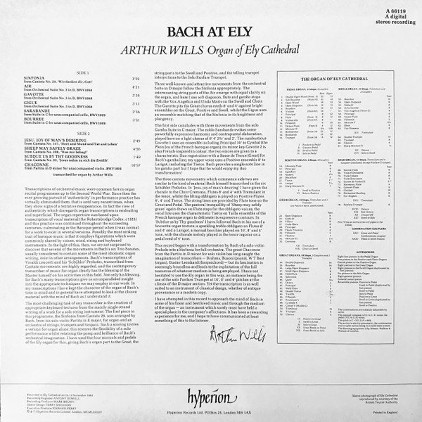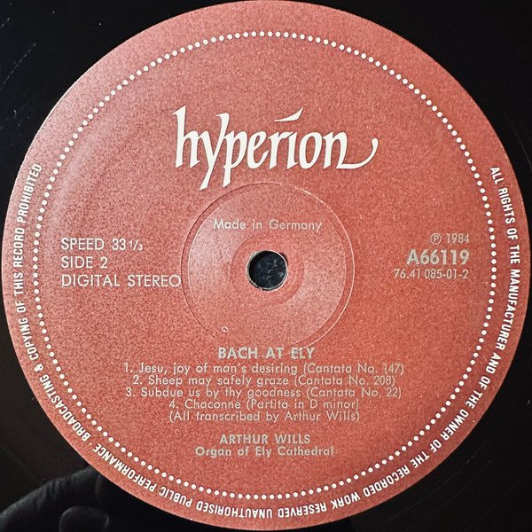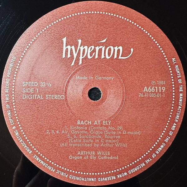Released in a high gloss sleeve with a TELDEC Direct Metal Mastering DMM sticker on the front Track credits are taken from the labels. These are expanded on the sleeve Track durations are taken from the sleeve Back sleeve: - A digital stereo recording - Recorded in Ely Cathedral on 12, 13 November 1983 - ℗ & © [l=Hyperion Records Limited] London, MCMLXXXIV - Sleeve photograph of Ely Cathedral reproduced by courtesy of the British Tourist Authority - Printed in England Runouts are stamped except for CS-B-1 (Side A) and B-B-1 (Side B) which are etched