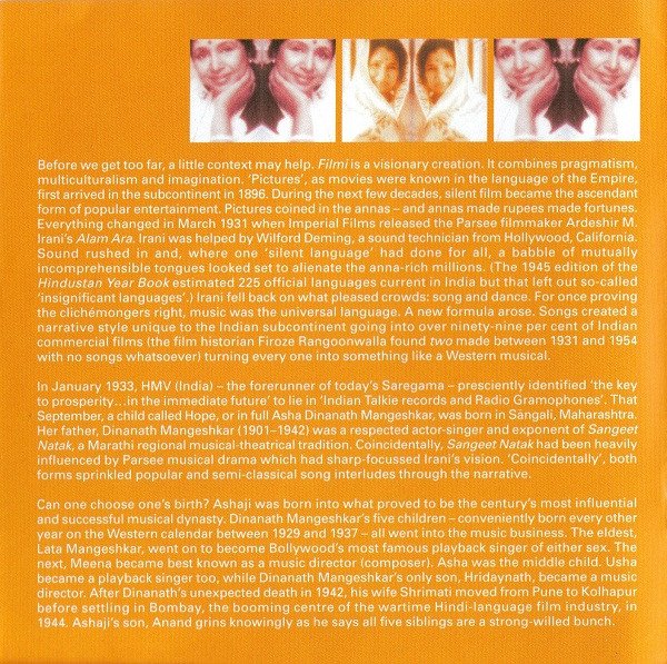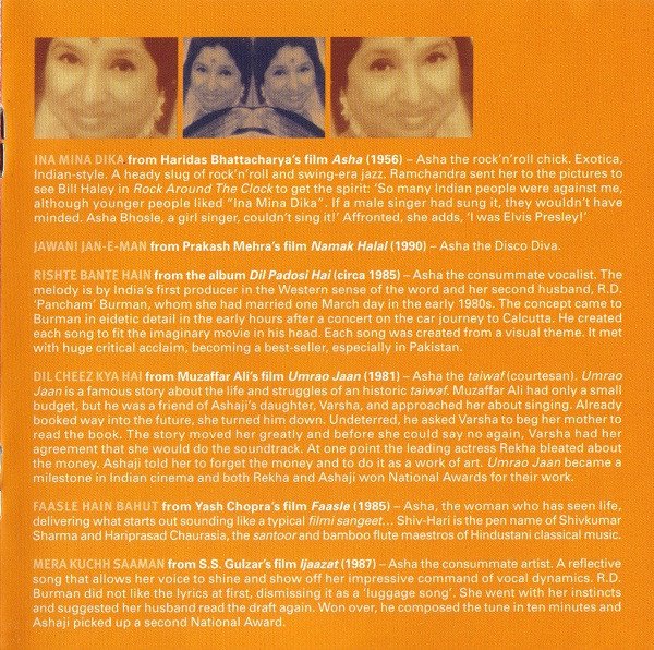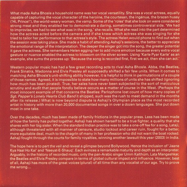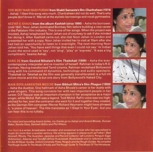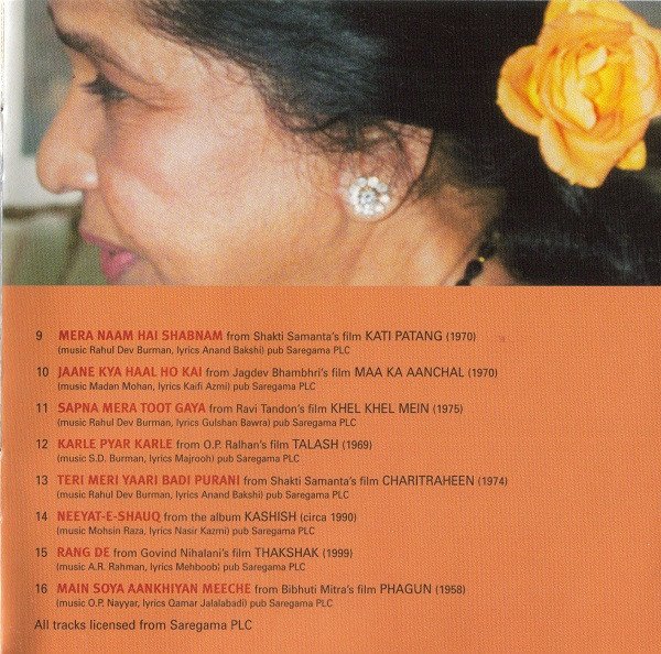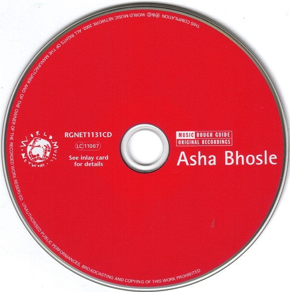 [Booklet:] All tracks licensed from Saregama PLC Made in Great Britain [Tray insert:] All tracks featured on this album are original recordings by the artist. Total Playing Time: 78:10 Produced by World Music Network in association with Rough Guides and New Internationalist This compilation: ℗&©World Music Network 2003 The World Music Network name and logo are registered trademarks of World Music Network UK Ltd Made in Great Britain [Label:] This compilation ℗&© World Music Network 2003. Clear tray jewel case packaging with 12-page booklet