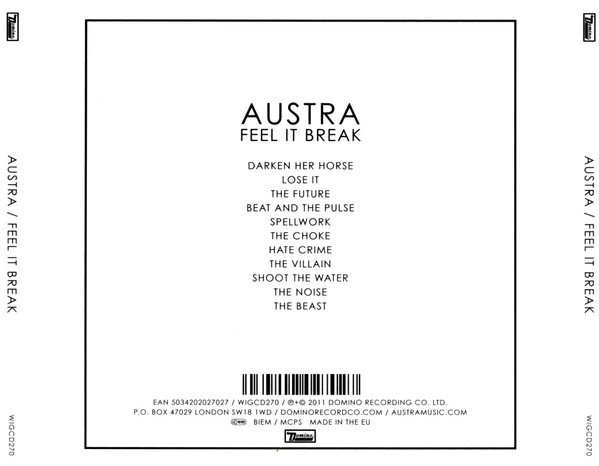 Standard jewel case with 12-page lyrics booklet. Tracks 1-3, 6-11 recorded at Giant, tracks 5-6 recorded at 6 Nassau Piano for tracks 2, 3, 6, 8, 11 recorded at Canterbury. Mixed at Golden Ratio, Montreal, Quebec. Mastered at JLM Sound. ℗+© 2011 Domino Recording Co. Ltd. P.O. Box 47029 London SW18 1WD Made in the EU.
