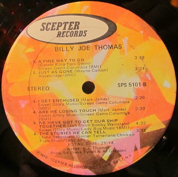 Recorded at Electric Lady Studios, New York Sound Recorders & United, Los Angeles Quadrophonic, Nashville. ℗ 1972 Scepter Records, Inc. Publishing: Almo Music (ASCAP) - track A1 Summerhill Songs/Screen Gems-Columbia (BMI) - track A2 Black Bull Music/Stein & Van Stock (ASCAP) - track A3 Screen Gems-Columbia (BMI) - track A4, A5, B1, Canopy Music/ASCAP - track A6 Rosebridge (BMI) - track B2 Sweet Glory Music/Screen Gems-Columbia (BMI) - track B3, B4 Sweet Glory Music/Ladybug Music (BMI) - track B5 Warner Tamerlane/Chicken Flats Music (ASCAP) - track B6 Gatefold sleeve packaging. Runout notes: Sides A & B etched; STERLING stamped