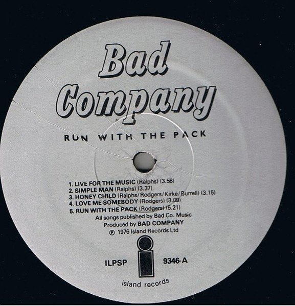 Recorded in Grasse, France, September 1975 with the Stones Mobile Unit. All songs published by Bad Company Co. Music except track B2 published by Carlin Music Corp. ℗ 1976 Island Records Ltd. Bugs Bunny © Warner Bros., Inc. ℗ 1976 – on the rear sleeve Sleeve looks grey but real colour is silver. Underlining of text, circle around the wolfpack and wolfpack is embossed on the front cover. Island 'i' logo and underlining of text is embossed on the back cover.