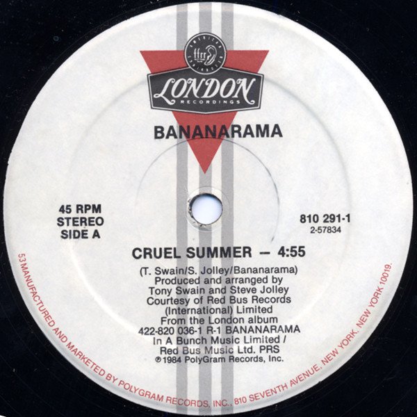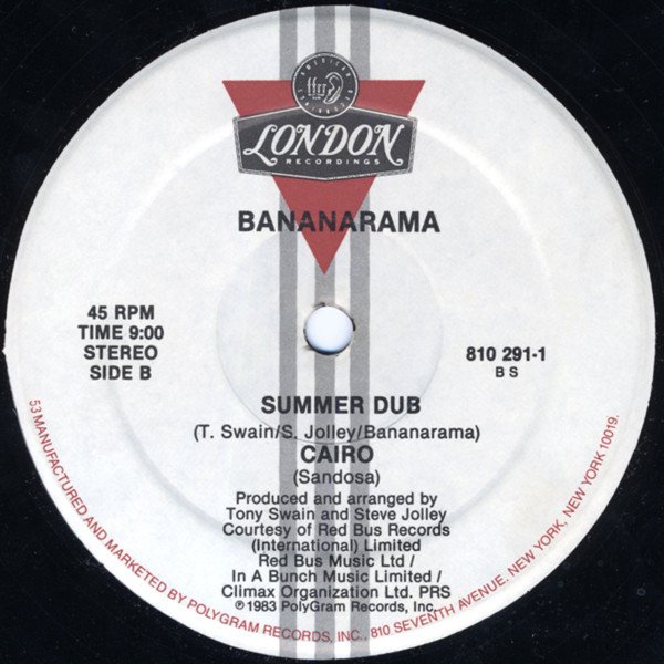 Issued in a picture sleeve. Cat# on sleeve spine & reverse: 810 291-1 R-1 Cat# on labels: 810 291-1 Label on spine: London Label on sleeve face, sleeve reverse, and labels: FFRR American Recordings / London Recordings (combined logo) "53" at the beginning of label rim text denotes a [l277410] pressing. Side A duration printed on label: 4:55 Side B duration printed on label: 9:00 Track B1 mix title appears only in the sleeve artwork and may not be part of the actual title. Info on sleeve: ©℗ 1984 London Records Ltd. B1 & B2 ℗ 1983 London Records Ltd. Manufactured and Marketed by PolyGram Records Printed in U.S.A. Info on labels: Track A ℗ 1984 PolyGram Records, Inc. Tracks B1 & B2 ℗ 1983 PolyGram Records, Inc.
