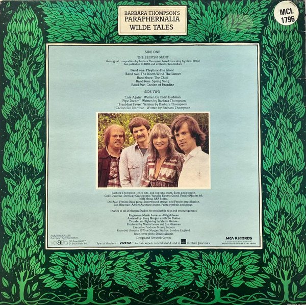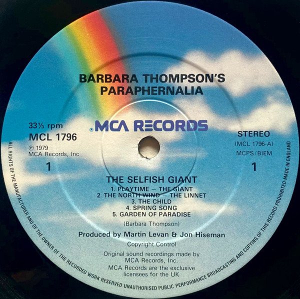 —Cover info— The Selfish Giant: An original composition by Barbara Thompson based on a story by Oscar Wilde, first published in 1888 and written for his children. Recorded Autumn 1979 at Morgan Studios, London England Paraphernalia European Representation: veraBra PO Box 640157 D-5000 Koln 60 MCA Records 1 Great Pulteney Street, London W1 Centre labels info— ℗ 1979 MCA Records, Inc. Original Sound Recording Made By MCA Records, Inc.