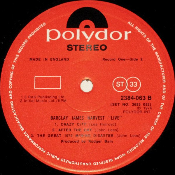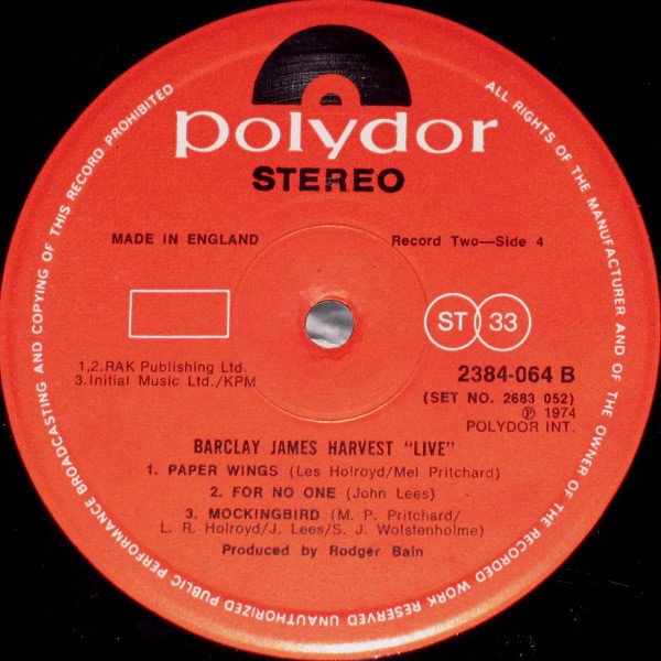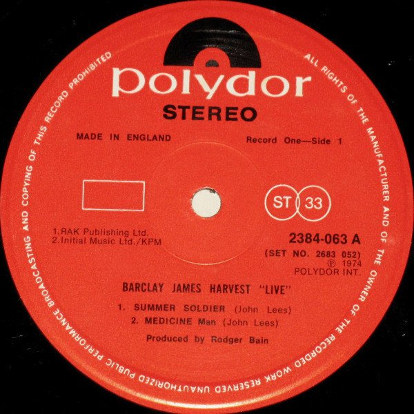 Label variation of [r=1601582]. [r=9287626], [r=11991178] and [r=12088712]: different text positioning on titles and ℗ credit. Gatefold sleeve, some copies came with large price sticker. Track D3 is credited only to John Lees on the sleeve. Recorded live at the Theatre Royal Drury Lane, London and the Stadium, Liverpool, with the Island Mobile Studio. Mixed at the Island Studios, London. On the labels: Tracks A1, B1, B3 to D2 : RAK Publishing Ltd. Tracks A2, B2, D3 : Initial Music Ltd./KPM On the inside of the sleeve, publishers of tracks A1 and A2 are switched and Initial Music Ltd. is not mentioned. Printed and made by Howards Printers (Slough) Ltd., England. ℗ 1974 Polydor Int.
