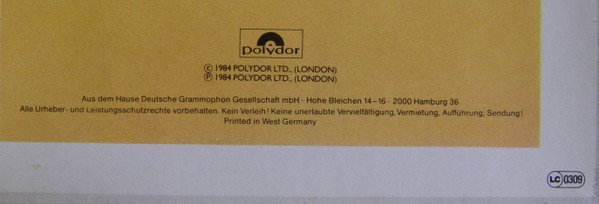 Album digitally recorded at Wisseloord Studios, Holland using SONY PCM 24 track system. Album digitally mixed at Advision Studios, London. Mastered at The Townhouse. Came with printed inner sleeve Came with text inner sleeve Came with a BJH order form for t-shirts etc and a list of previous records The A & 2 and B & 2 in the A//2 & B//2 runouts have been over stamped with an X May have a sticker reading "Club-Edition 40 849 2" over the catalogue number on the back. Black plastic center ring and Made in West Germany on labels Note on runouts: 'LET OP-DREMPELS' is always etched. Almost identical version, but without STEREO on label side A - [r=14920931]