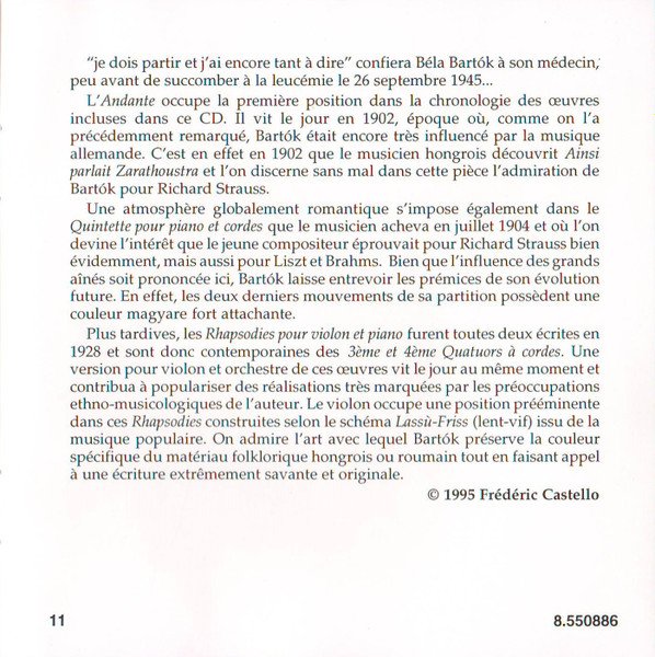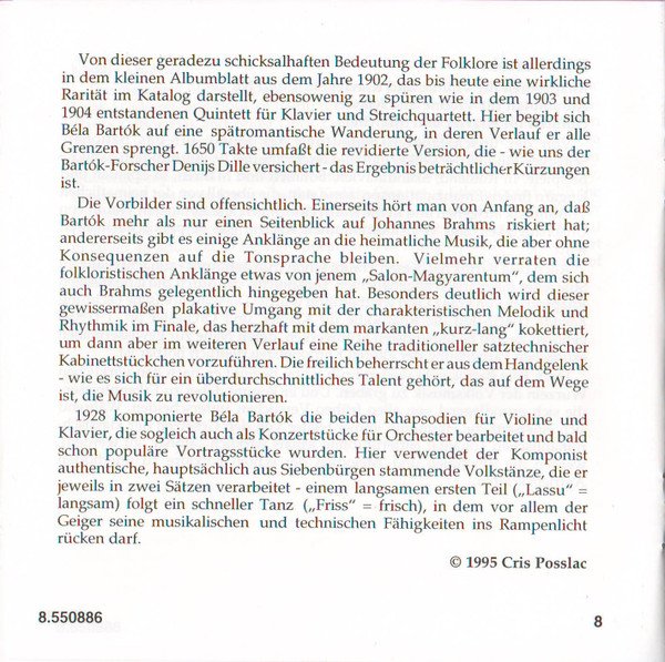 Playing Time: 66'37" Tracks 1-5 recorded June 27 & 28, 1993 at the Unitarian Church, Budapest. Tracks 6-9 recorded June 28-30, 1994 at the Scottish Church, Budapest. ℗ 1995 HNH International Ltd. © 1995 HNH International Ltd. CD comes packaged in a standard plastic jewel case, and includes a 12-page booklet with notes in English, German and French.