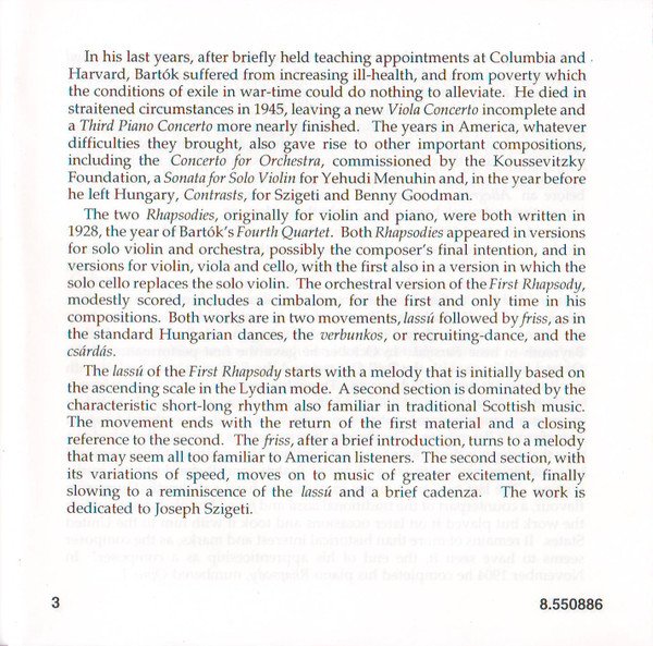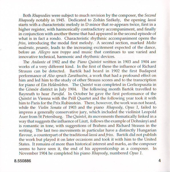 Béla Bartók - Rhapsodies Nos. 1 & 2 / Piano Quintet