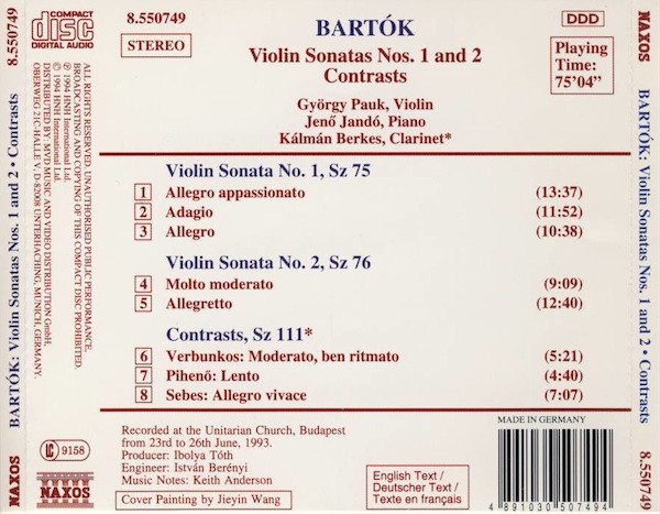 Béla Bartók - Violin Sonatas Nos. 1 And 2 / Contrasts