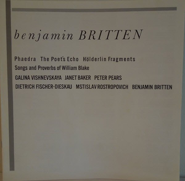 Benjamin Britten - Benjamin Britten - Phaedra - The Poets's Echo - Holderlin Fragments - Songs and Proverbs of William Blake