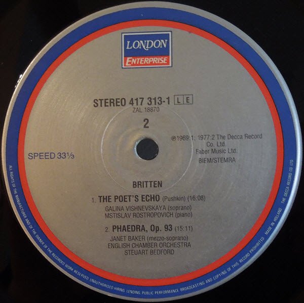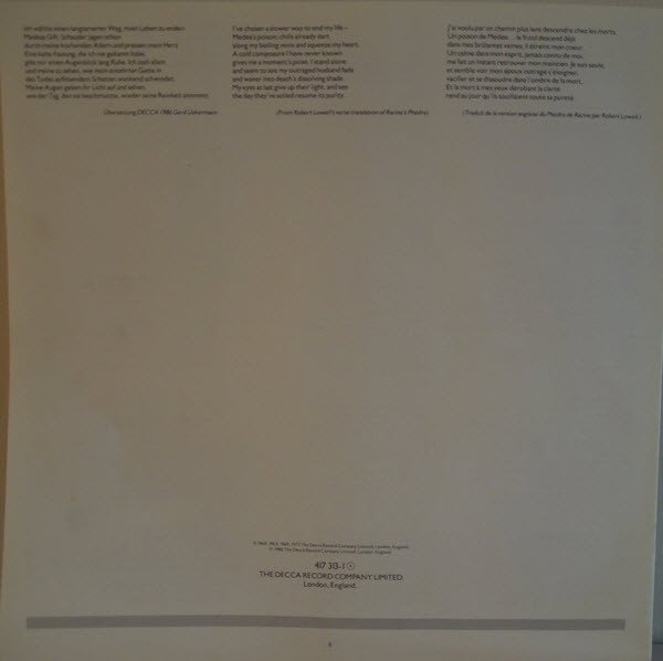 A1 ℗ 1969 A2 ℗ 1963 B1 ℗ 1969 B2 ℗ 1977 Includes 8 page Booklet with all texts in English, French, German and Russian (Poets Echo only)