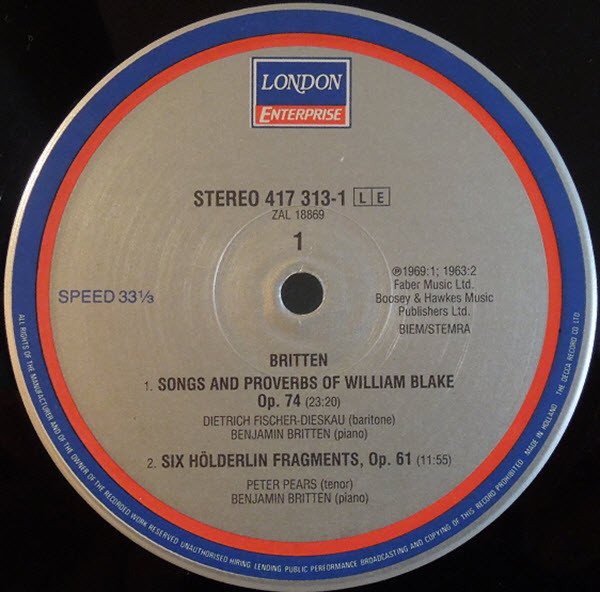 | A1 | Songs and Proverbs of William Blake, Op. 74 | 23:20 |