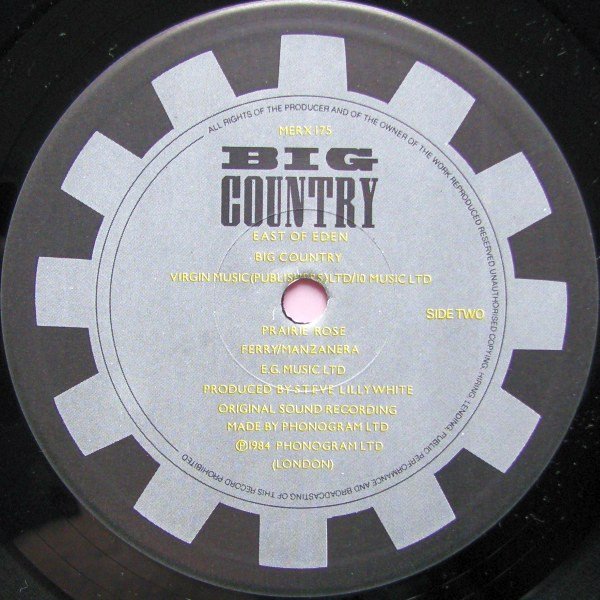 Glossy front and back cover Both logo's, 'Mercury' and 'Phonogram' printed on back sleeve. [labels] Tracks A & B1: Virgin Music (Publishers) Ltd/10 Music Ltd Track B2: E.G. Music Ltd Original sound recording made by Phonogram Ltd. ℗ 1984 Phonogram Ltd (London) A = Side One B = Side Two