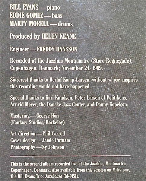 Recorded at the Jazzhus Montmartre (Store Regnegade), Copenhague, Denmark; November 24, 1969 (P) 1988, Fantasy, Inc.