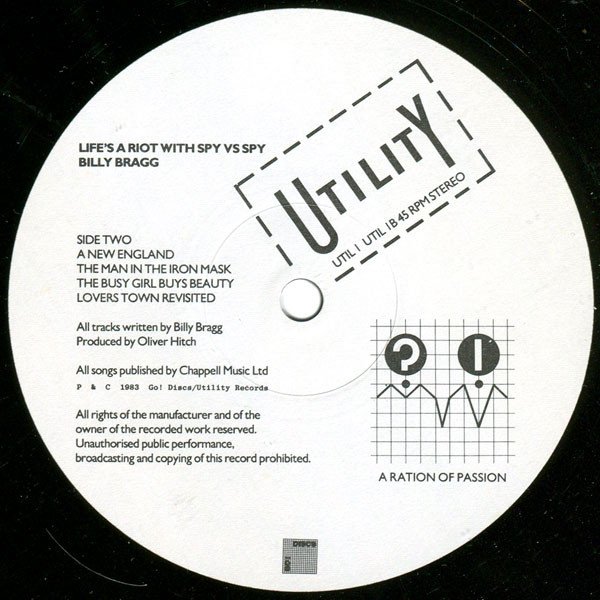 This is the second pressing of the album from November 1983 (for the first pressing, see [r=8708594]).Unlike later releases, it features a square Go! Discs logo. Comes with a black paper inner sleeve. Recorded 2nd - 4th February 1983 Chappell Music, Park Street, London, WI. [uncredited] Rear of sleeve states "Beware The Squander Bug"; the labels state "A Ration of Passion". Note: The track times are not printed on labels or sleeve.