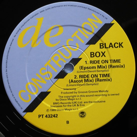 Catalogue number PT43242 (sleeve), PT 43242 (labels). Sleeve: Deconstruzione Italiano ℗ Disco Magic s.r.l. The copyright in this sound recording is owned by Disco Magic s.r.l. BMG Records (UK) Ltd. are the exclusive licensees for the UK and Eire. Distributed by BMG / Records. Distribue par BMG / Ariola. Vertreib durch BMG / Ariola. A Bertelsmann Music Group Company Printed in England. Marketed and distributed by BMG Records (UK) Ltd Labels: Manufactured in the UK The copyright in this sound recording is owned by Disco Magic s.r.l. BMG Records (UK) Ltd. are the exclusive licensees for the UK & Eire ℗ 1989 Disco Magic s.r.l.