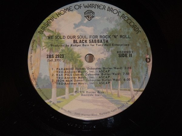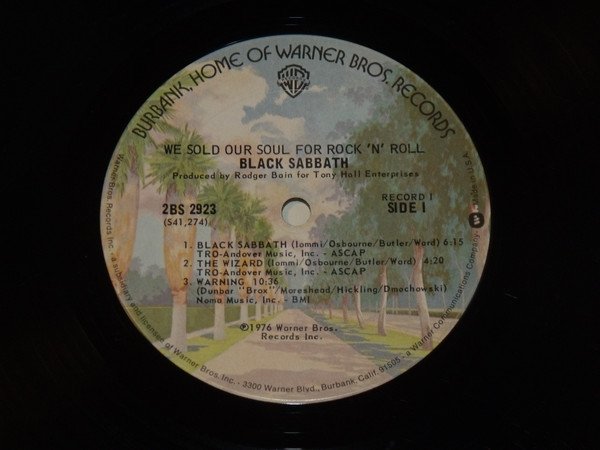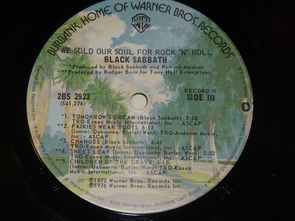 ℗©1976 Warner Bros. Records Inc Warner's "Burbank" labels and inner sleeves. "Wicked World" is listed on the back sleeve after "Iron Man". It is not listed on the label and it is not on the album.