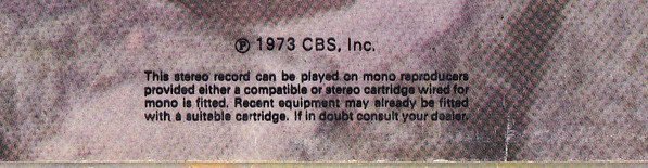 - Pressed By – CBS Pressing Plant, Aston Clinton