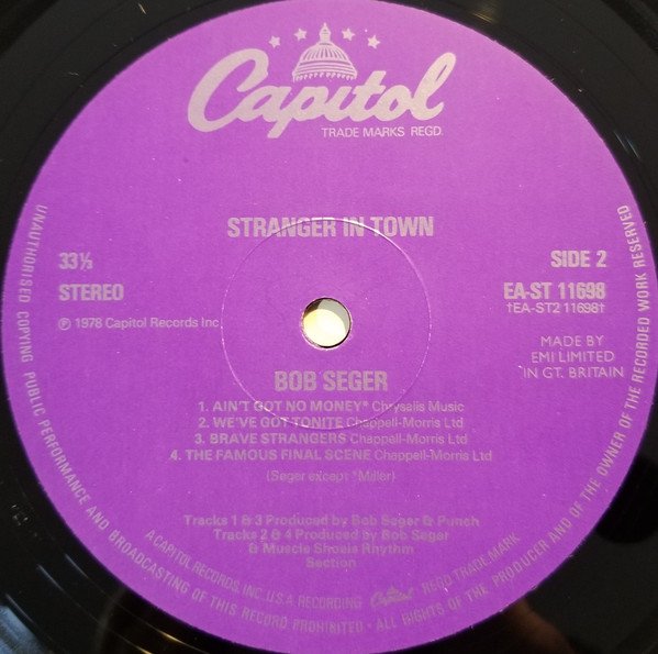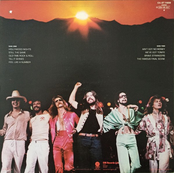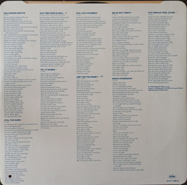 This version has "EA-ST 11698" printed on back cover's right top corner Issued with a die cut light card custom inner sleeve with lyrics and credits. Back cover: ℗ 1978 Capitol Records, Inc. Made and printed in Great Britain 7806 TM Garrod & Lofthouse Ltd. Labels: ℗ 1978 Capitol Records, Inc. Made by EMI Limited in Gt.Britain Inner sleeve: Mixed at Capitol Records Studios, Hollywood, Cal., and Cherokee Studios, Los Angeles, Cal. Recorded at: Criteria Sound Studios, Miami, Fla. Muscle Shoals Sound Studios, Sheffield, Ala. Cherokee Studios Capitol Records Studios Sound Suite Studios, Detroit, MI Mastered at Capitol Records Studios Cat.# EA-ST 11698 on sleeve and labels. Cat.# 0C 054-85 333 on the back cover below Cat.# EA-ST 11698. Runouts are stamped.
