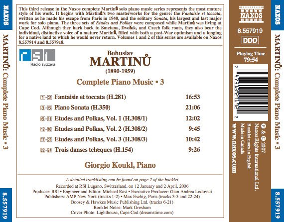 Bohuslav Martinů - Piano Sonata • Fantaisie Et Toccata • Etudes And Polkas