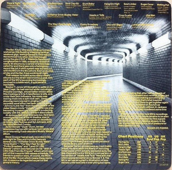 Tracklisting: Publisher(s); ℗ Year; Chart Positions - Date / US Soul / US Pop / UK Pop: Position A1: [l493902] / [l501601]; 1969; 3/69 / 7 / 6 / 4 Position A2: [l264571]; 1967; 3/67 / 6 / 37 / - Position A3: [l287939]; 1969; 6/69 / 35 / 37 / - Position A4: None given; 1969; 8/69 / - / - / 35 Position A5: [l493902] / [l501601]; 1969; 9/69 / 46 / 88 / - Position A6: [l268737]; 1968; 11/68 / 35 / 9 / - Position A7: [l493902] / [l501601]; 1968; 7/68 / 7 / 17 / 30 Position A8: [l1521220]; 1973; 8/73 / 67 / - / - Position A9: [l493902] / [l501601]; 1971; 4/71 / 21 / 45 / - Position B1: [l264571]; 1969, - / - / - / - Position B2: [l277317], 1969; - / - / - / - Position B3: [l493902] / [l501601]; 1969; - / - / - / - Position B4: None given; 1969; - / - / - / - Position B5: None given; 1969; - / - / - / - Position B6: None given; 1969; - / - / - / - Position B7: [l266904]; 1969; - / - / - / - Position B8: [l493902] / [l501601]; 1969; - / - / - / - Position B9: [l1029554] / M.C.P.S.; 1969; - / - / - / - Special Thanks to [a1650538], [a1911870] and [a284409] [l24936] [l63404] ℗ STAX RECORDS Available on cassette TM 7902 RS Printed cardboard inner with liner notes and photos Made and printed in Great Britain