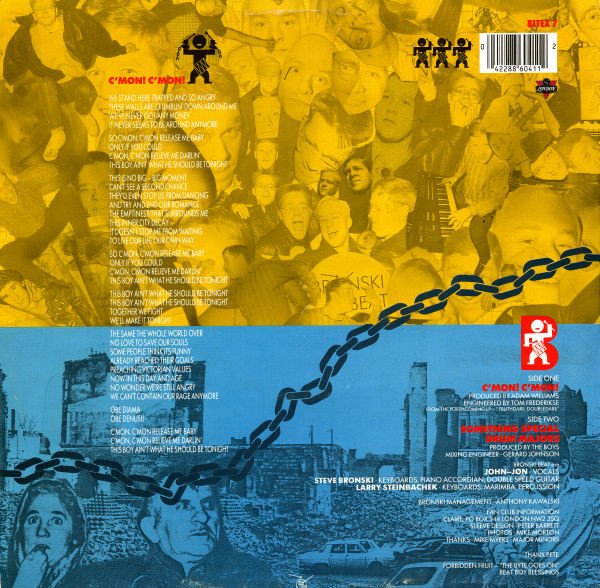 Bronski Beat Music Ltd./William A. Bong Ltd. Original sound recording made London Records Ltd. ℗ 1986 London Records Ltd. Track B2 will actually play infinitely as the track continues into the runout groove. Track durations are not listed on the release. Metalwork by Musitech, High Wycombe.