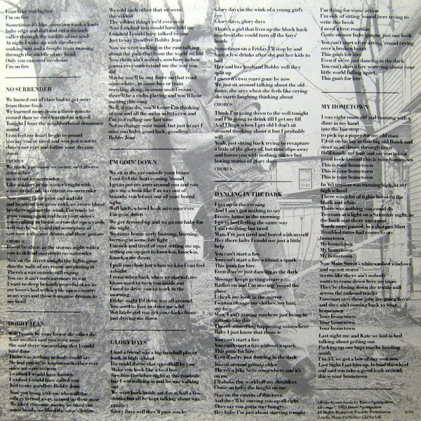 No barcode. Red label design. Made In England. Album comes with printed inner sleeve and a 2-sided lyrics sheet sized 10" x 10". ℗ © 1984 Bruce Springsteen