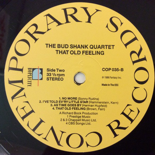 Sleeve notes: Ⓟ 1986 Fantasy, Inc. Direct metal mastered from digital tape Stereo Made in the EEC Recorded Direct To Digital At Fantasy Studios, Berkeley (Feb. 17-18,1986) Not licensed for sale in the USA & Canada Boplicity Records Present Contemporary Records, 48-50 Steele Road, London NW10 7AS