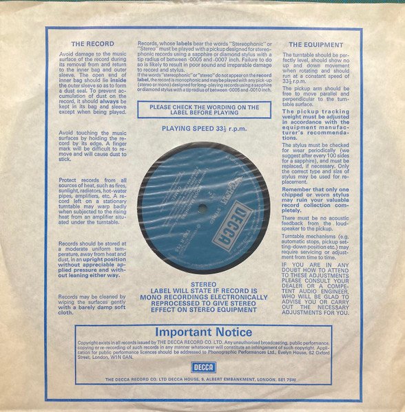 - Pressed By – Decca Record Co. Ltd., Pressing Plant, UK.