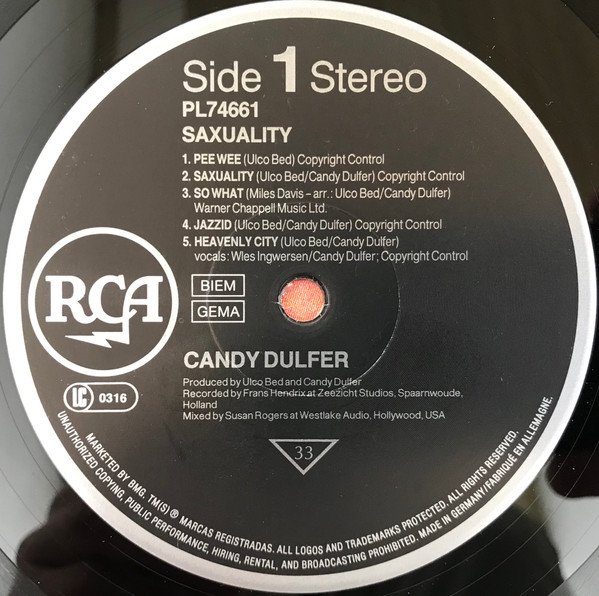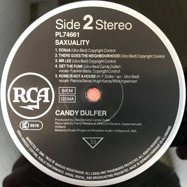 Back Cover: Euro D: F: UK:HH Distributed in the UK by BMG Records. Distribue en Europe par BMG Ariola. Vertrieb in Europa durch BMG Ariola. (RCA & BMG logos) Vinyl in semi-matt, full-color liner with photos & credits. Printed in Germany by TOPAC - Imprimé en Allemagne par TOPAC. (B-Side label has embossed 'clef' - signature of Sonopress GmbH pressing plant, Germany) Durations do not appear on this release.
