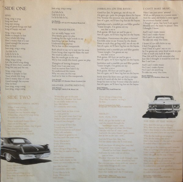 | B3 | Yesterday Once More (Reprise) |