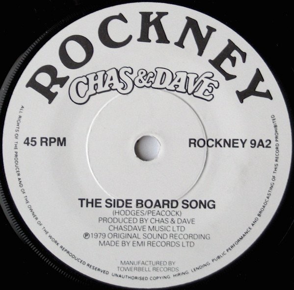 Chasdave Music Ltd A: ℗ 1980 Original sound recording made by Towerbell Records. B: ℗ 1979 Original sound recording made by EMI Records Ltd. Distributed by Pinnacle. Manufactured by Towerbell Records.Track AA written as "The Side Board Song" on the label.Similar version is here, [r8908511], which doesn't credit Pye Studios or Damont in runouts.