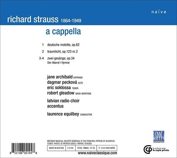 Recorded in June 2009 at the Église Notre-Dame du Liban, Paris, France (p) & (c) 2009 Naïve 36-page booklet includes credits, photos, liner notes and texts in German, English and French. Digipack with plastic inner tray