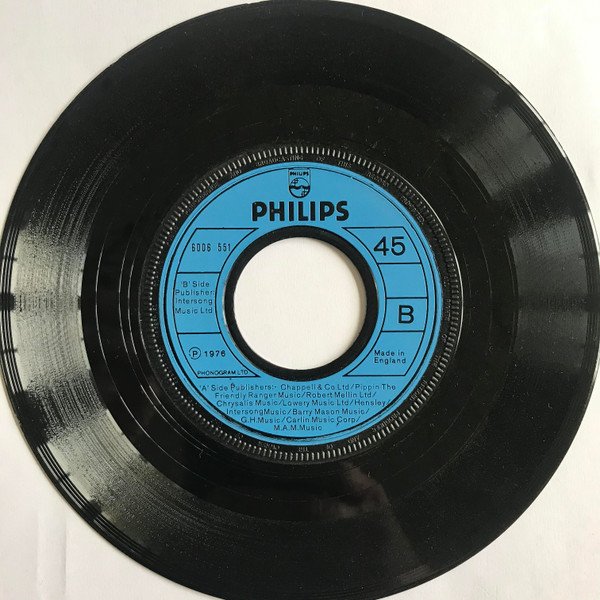 Blue injection labels with large centre hole. For small centre hole see [r=1861919] with slightly different runout matrix.Chappell & Co/Pippin the Friendly Ranger Music/Robert Mellin Ltd/Chrysalis Music/Lowery Music Ltd/Hensley/Intersong Music/Barry Mason Music/G.H. Music/Carlin Music Corp/M.A.M. Music.[A] Intersong Music. [B]