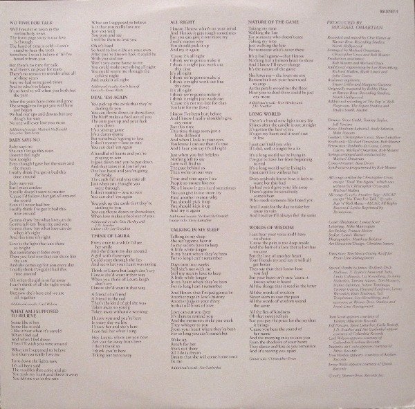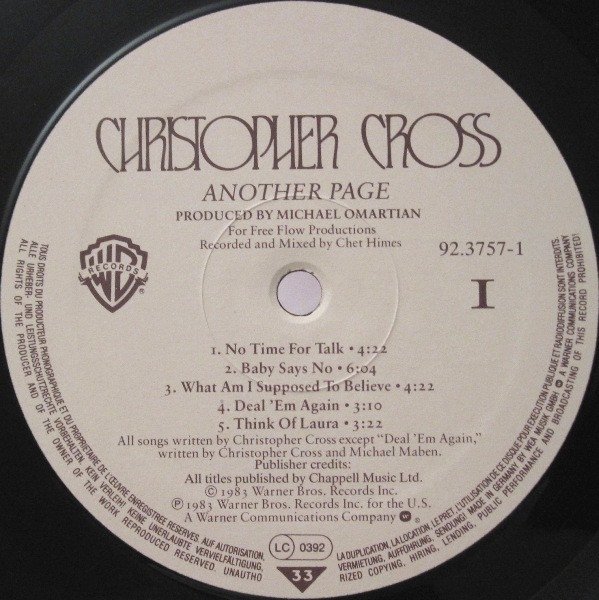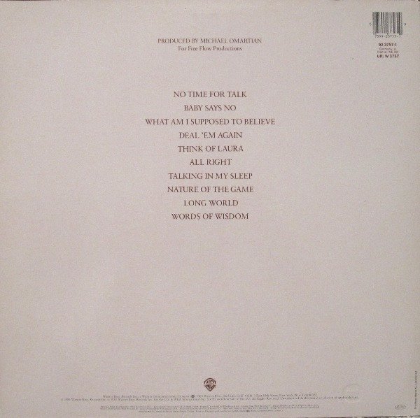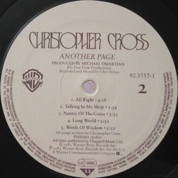 Recorded and mixed at Warner Bros. Recording Studios, North Hollywood W logo embossed on back of sleeve. Issued with custom cardboard inner sleeve. Back of sleeve mentions being "Manufactured in Germany by Record Service GmbH, Alsdorf" and then lists distributing companies for several European countries (Belgium, Germany, England, Spain, France, Ireland, Italy, Netherlands, Austria and Sweden. Similar versions exist with different Rights Societies printed on the labels. This version has none.