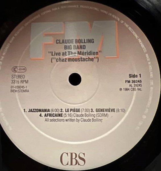 Made in Holland Recording location variations: - On cover front: Live At The Hotel Méridien Paris Patio Jazz - On cover rear: “Live at The Méridien”-Paris “Chez Moustache” - On labels: ʼʽLive at the Méridienʼʽ (ʼʽchez moustacheʼʽ)