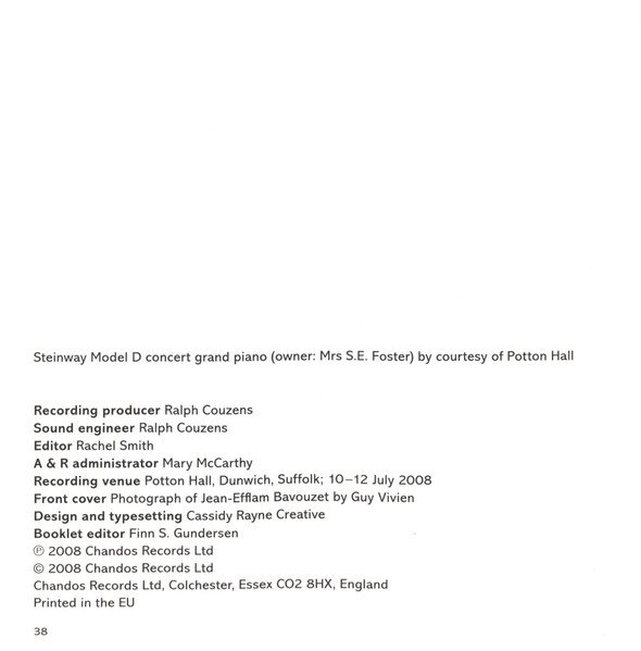 Recorded at Potton Hall, Suffolk 10-12/7/2008. Jewel case with a clear tray Ⓟ&© 2008 Chandos Records Ltd. Made and printed in the EU