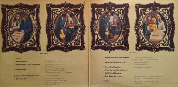 A5: Listed on sleeve as 'Where Would That Lead Me'. Some copies came with brown round sticker with white letters 'including hit single GAYE' UK version similar to [r14837154] but with label layout and Matrix / Runout differences. ℗ 1973 Front Cover Photograph by kind permission of Hartlebury Museum Production co-ordination for Dandelion Records Ltd.: Clive Selwood Matrix on labels in brackets.