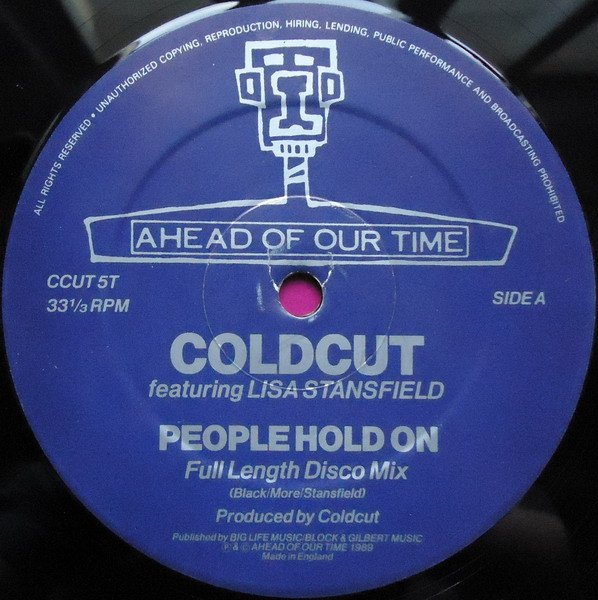 Label variation - same sleeve as [r=14821973] but with blue labels. Lisa Stansfield appears courtesy of Arista Records "Sorry but this just isn't music" A side: Published by Big Life Music/Block & Gilbert Music. B side: Published by Big Life Music. ℗ & © Ahead of Our Time 1989 Made in England