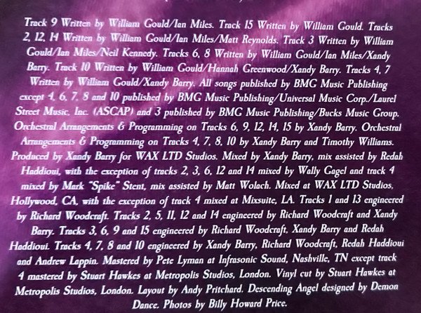 - Mastered At – Infrasonic Sound, Nashville, TN